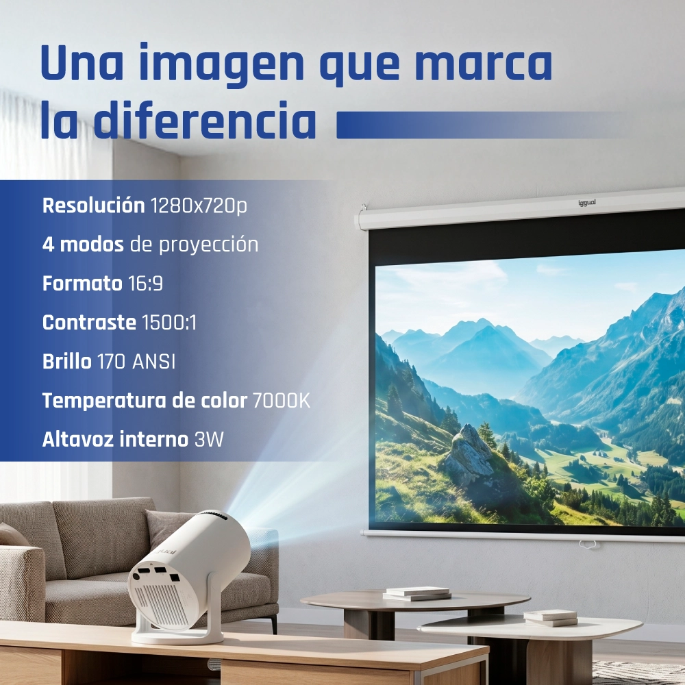 iggual Mini proyector MP720p HDMI WiFi BT Android